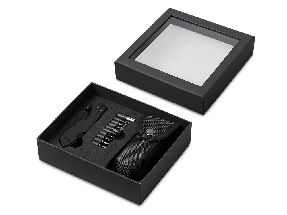 • Готовое решение под бренд: цифровая печать на окне упаковки или гравировка на мультитуле