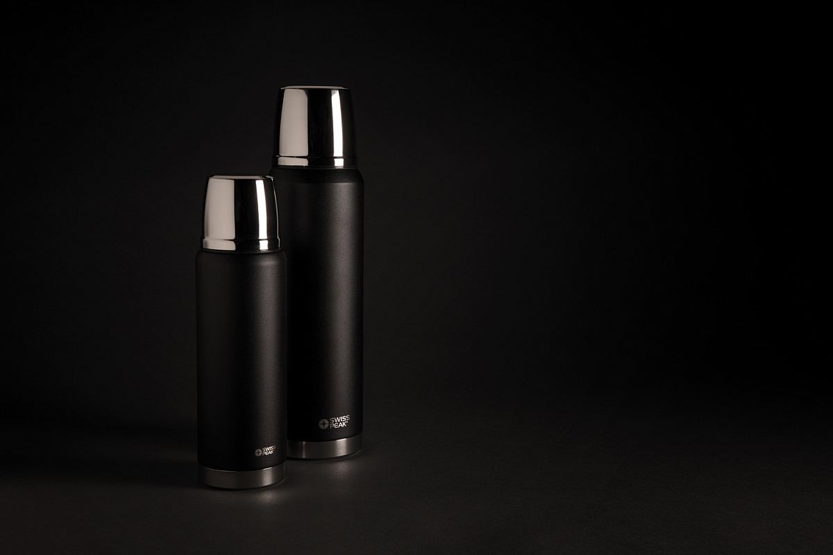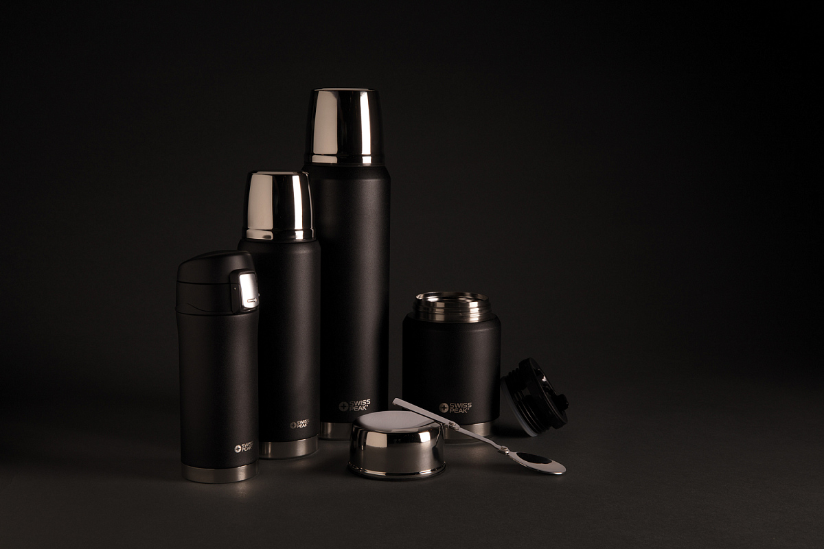 Коллекция Swiss Peak Elite с вакуумной изоляцией и двойными стенками из нержавеющей стали 18/8. Долговечное внешнее покрытие черного цвета, которое не облезет и не потрескается. Внутренние стенки покрыты медью, что обеспечивает максимальную проводимость для того, чтобы напитки сохраняли тепло до 8 часов или оставались холодными до 24 часов! Ручная мойка, защита от протекания. Объем 1000мл. , высота 32,6 см., диаметр 8,7 см.