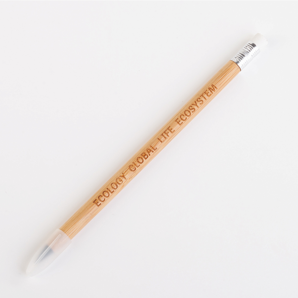 Экоответственный карандаш с защитным колпачком и ластиком. Пищущий элемент выполнен из сверхпрочного графита, длины письма которого хватит до 30 000 метров.