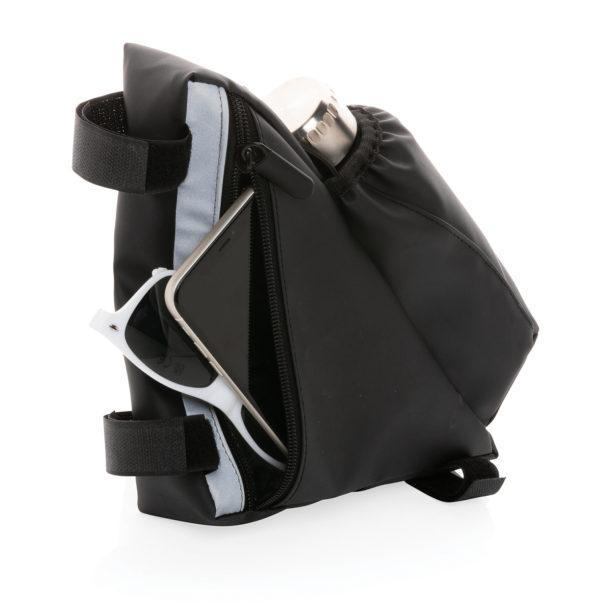 Велосипедная сумка с креплением на раму — идеальный аксессуар для велопрогулок. Несмотря на компактный размер, позволяет взять с собой все самое необходимое — даже бутылку с водой! Легко крепится на раме при помощи липучек. Водонепроницаемая. Светоотражающие свойства материала были протестированы в соответствии с требованиями EN 13356: 2001. Длина 18,5 см., ширина 6 см., высота 21 см., диаметр 0 см.