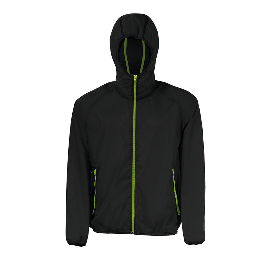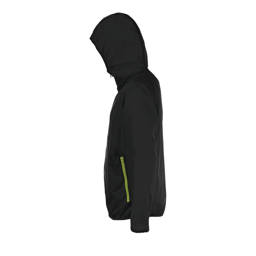 Легкая и компактная ветровка унисекс SHORE из водоотталкивающего и ветрозащитного материала. Два боковых кармана на молнии. Рукава реглан. Манжеты, капюшон и низ ветровки на эластичной тесьме. Молнии ветровки контрастного цвета. Складывается ветровка в свой карман на молнии. Цвет близкий к PANTONE 296C