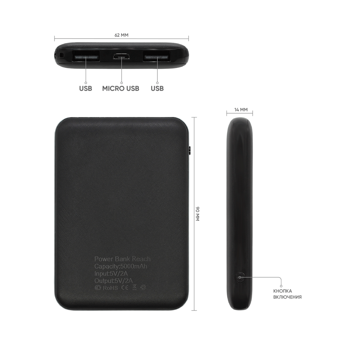 Внешний аккумулятор Reach, 5000 мАч (черный) можно заказать в нашей компании по самой доступной цене от 750 рублей.