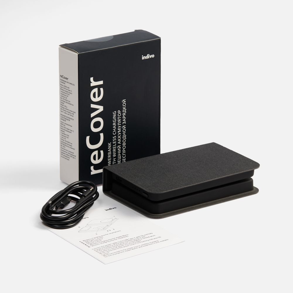 reCover — компактное технологичное устройство, которое эффектно сочетает в себе внешний аккумулятор и многофункциональную станцию беспроводной зарядки. Девайс не требует подключения к сети для зарядки без провода, поэтому его можно использовать как в офисе, так и в дороге.