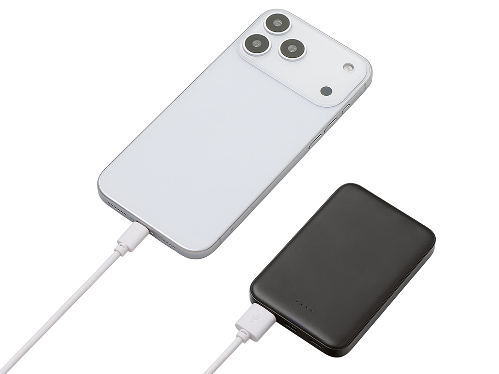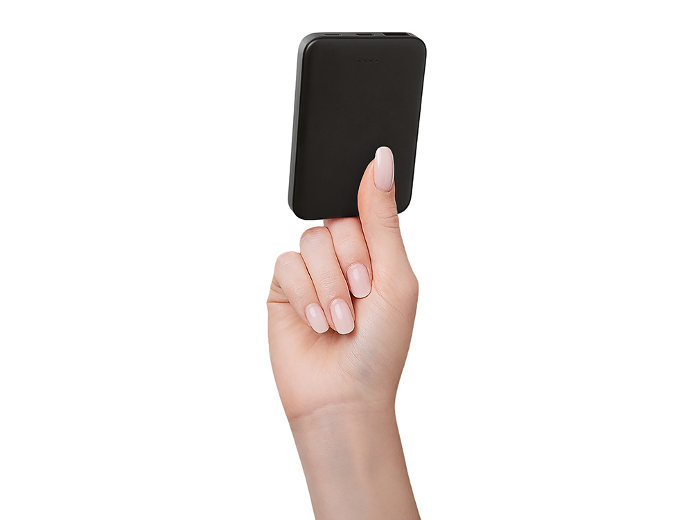 Стильный, тонкий и практичный — этот 5000 мАч повербанк создан для тех, кто ценит мобильность и универсальность. Идеальный корпоративный подарок для клиентов, партнёров и сотрудников, которые всегда в движении! Совместим со всеми смартфонами, имеется двунаправленный USB-C и дополнительное удобство - входной разъем Lightning. Разъемы USB-C и USB-A обеспечивают одновременную зарядку двух устройств. Благодаря мини размерам 91.5*62* мм и лёгкому весу (всего 102 г) легко помещается даже в карман рубашки или кошелёк. Лаконичная матовая поверхность выгодно подчеркнет логотип, а надёжная система защиты гарантирует безопасность при каждой зарядке. Поставляется в продуманной выдвижной упаковке с быстрым и эффектным открытием.