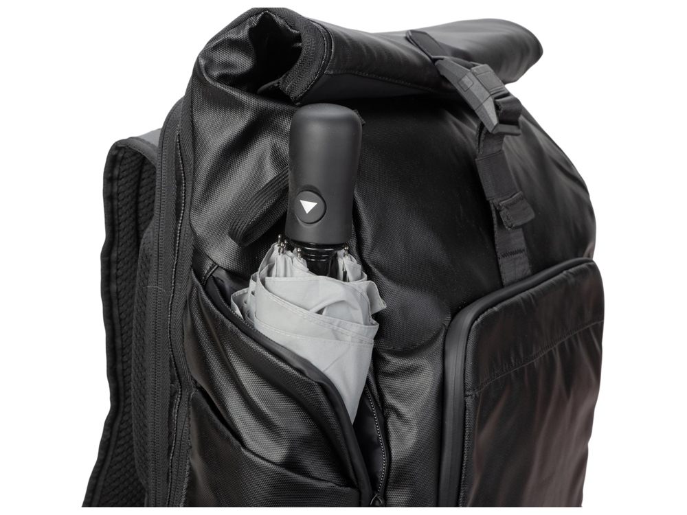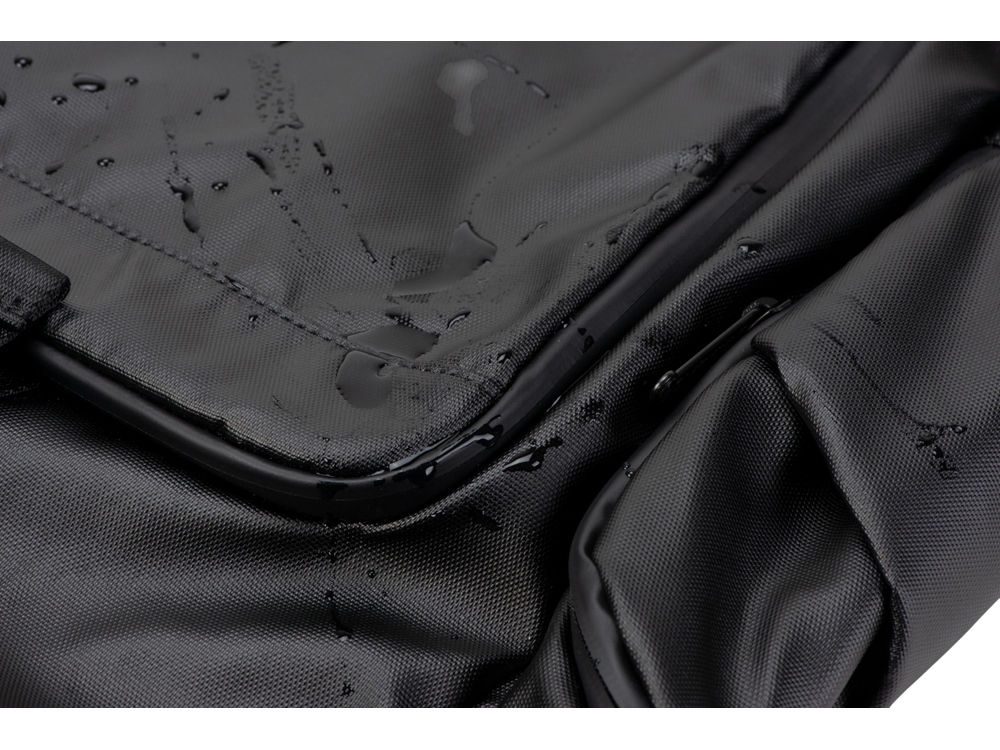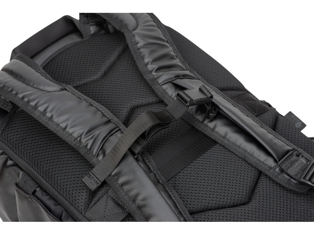 Большой вместительный рюкзак из непромокаемой ткани с водостойкими молниями снабжен множеством функций.