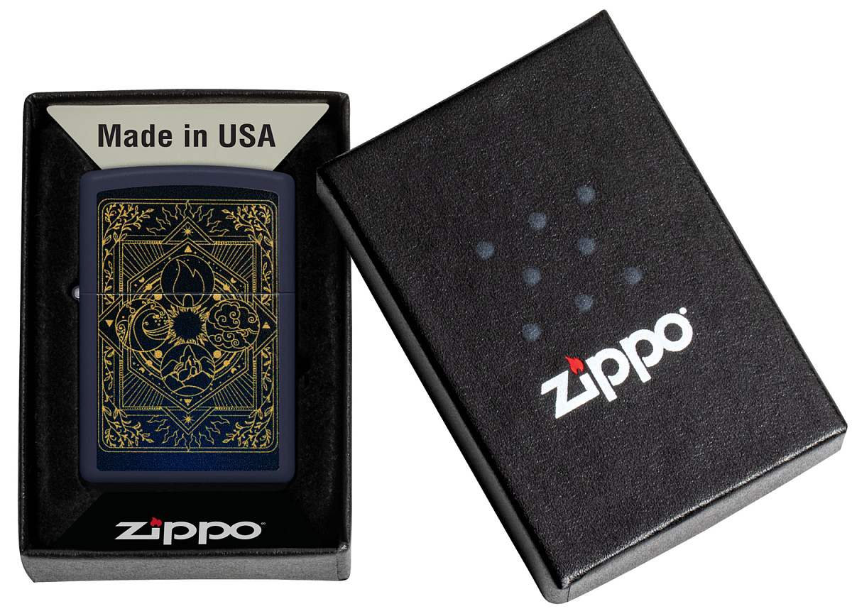 Зажигалка ZIPPO Elements Design с покрытием Navy Matte, латунь/сталь, синяя, матовая, 38x13x57 мм можно заказать в нашей компании по самой доступной цене от 7 390 рублей.