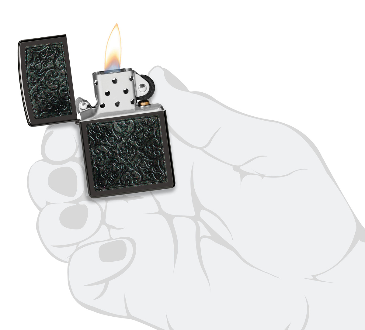 Зажигалка ZIPPO Pattern с покрытием High Polish Black, латунь/сталь, черная, глянцевая, 38x13x57 мм можно заказать в нашей компании по самой доступной цене от 8 550 рублей.