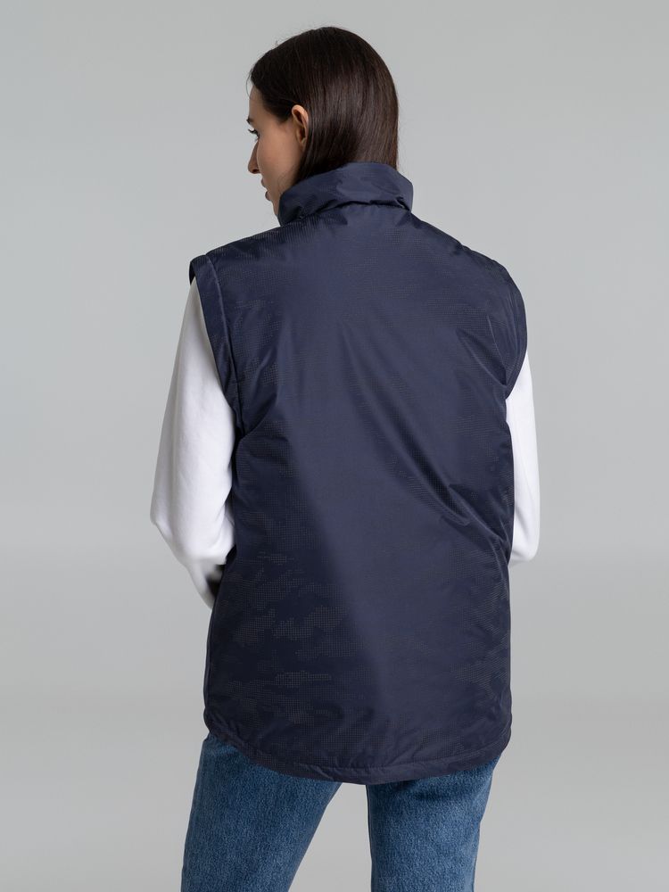Жилет с воротником-стойкой и светоотражающим рисунком.