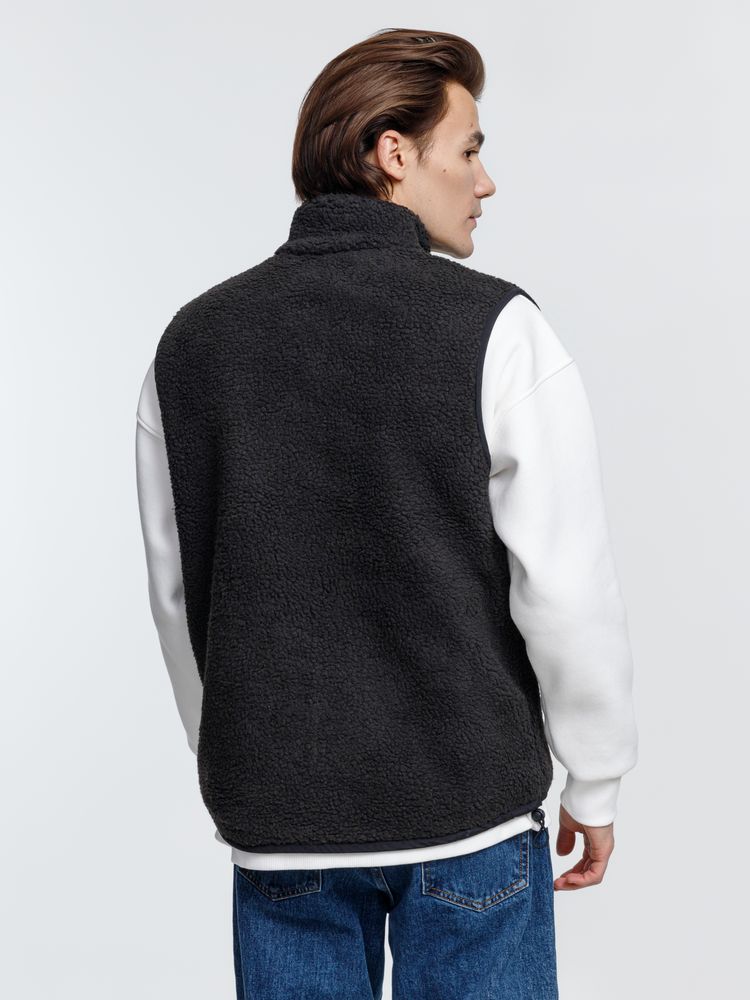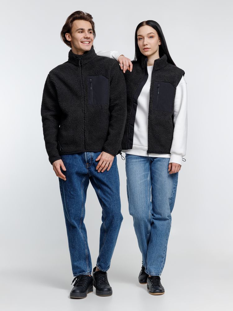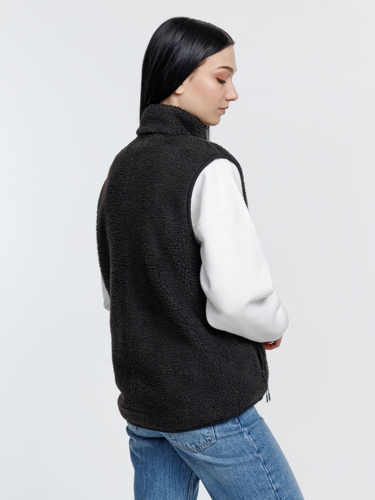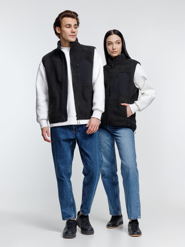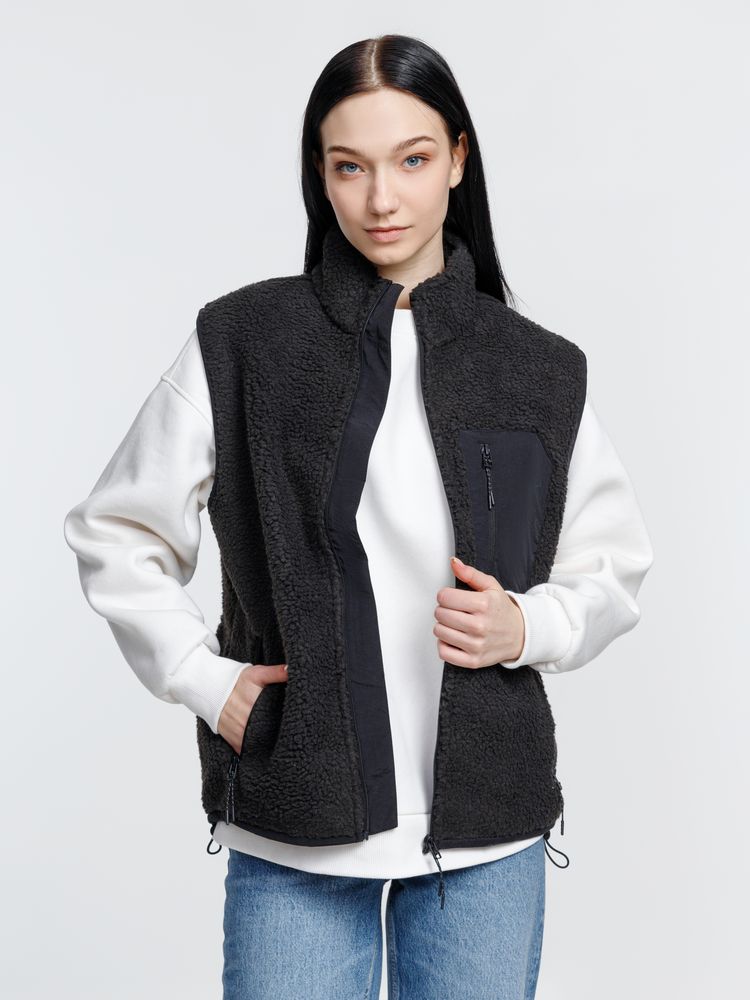 Жилет унисекс из фактурной искусственной шерпы с гладкой отделкой из таслана.