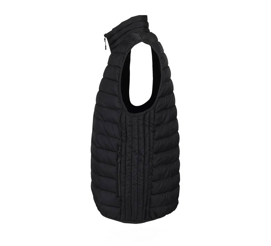 Металлические слайдеры с дополнительными модными пуллерами в тон изделия.Воротник-стойка. Эластичная тесьма по проймам и низу в тон изделия. Дополнительно жилет комплектуется сумкой-мешочком для хранения из основной ткани (но не упаковывается в неё).