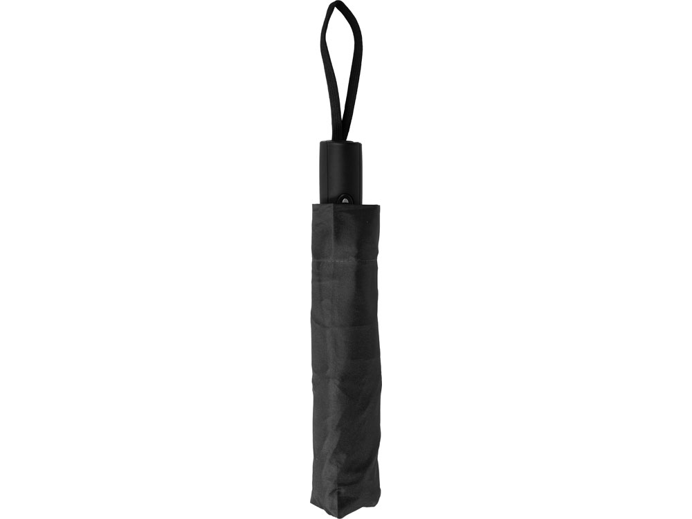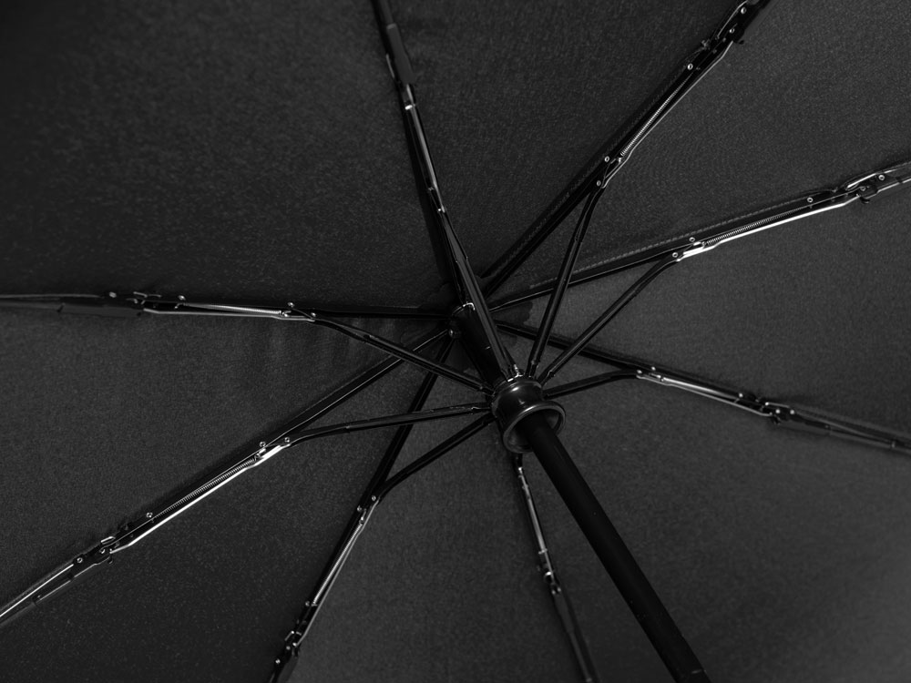 Купол зонта выполнен из переработанного пластика. Гибкие спицы из стекловолокна делают зонт стойким к порывам ветра. Удобная ручка софт тач. Фиксирующая купол застежка на липучке шириной 3 см - дополнительная опция для нанесения вашего логотипа.