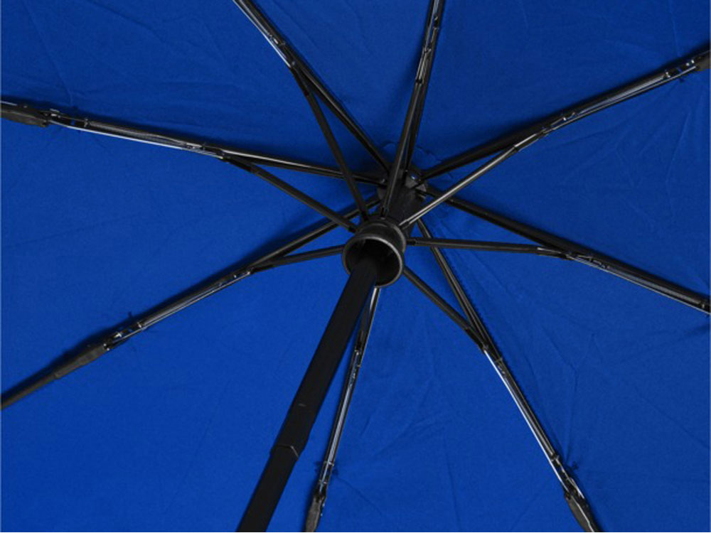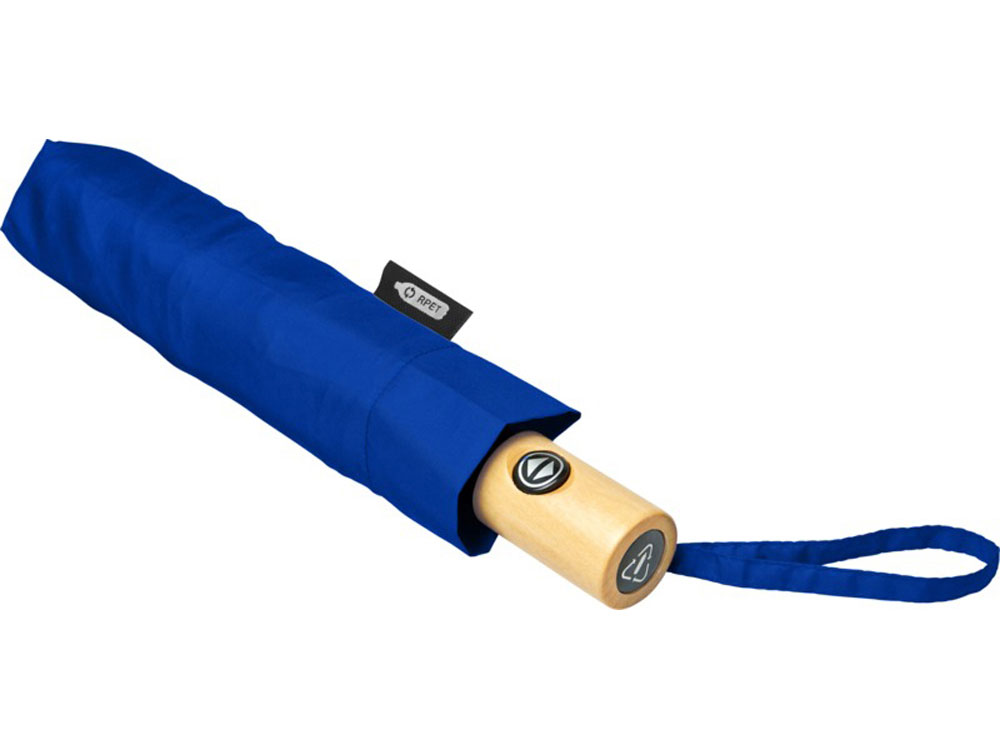 Автоматически открывающийся и закрывающийся зонт с куполом из эпонж полиэстера и переработанного ПЭТ-пластика. Прочный металлический стержень, высококачественная рама со спицами из стекловолокна, обеспечивающая максимальную гибкость в ветреную погоду. Поставляется с чехлом и может легко поместиться в сумку или рюкзак для удобного ношения.