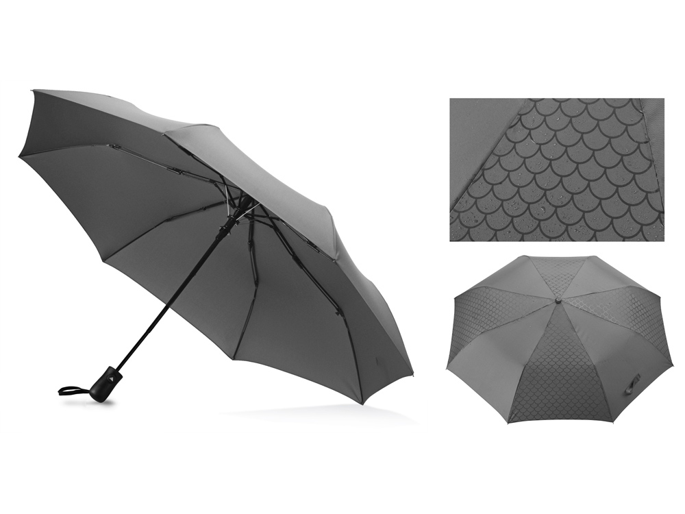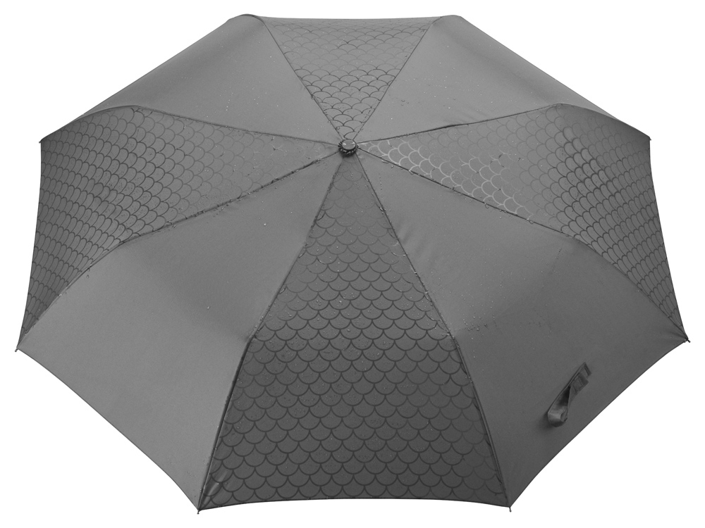 Зонт-полуавтомат с куполом из эпонжа. Рисунок на куполе проявляется, когда зонт намокает под дождем. По мере высыхания купола, рисунок на нем исчезает. Зонт не согнется при сильных порывах ветра и защитит от промокания, так как его каркас снабжен специальной системой противоветровой защиты. Ручка с мягким покрытием soft-touch для большего комфорта.
