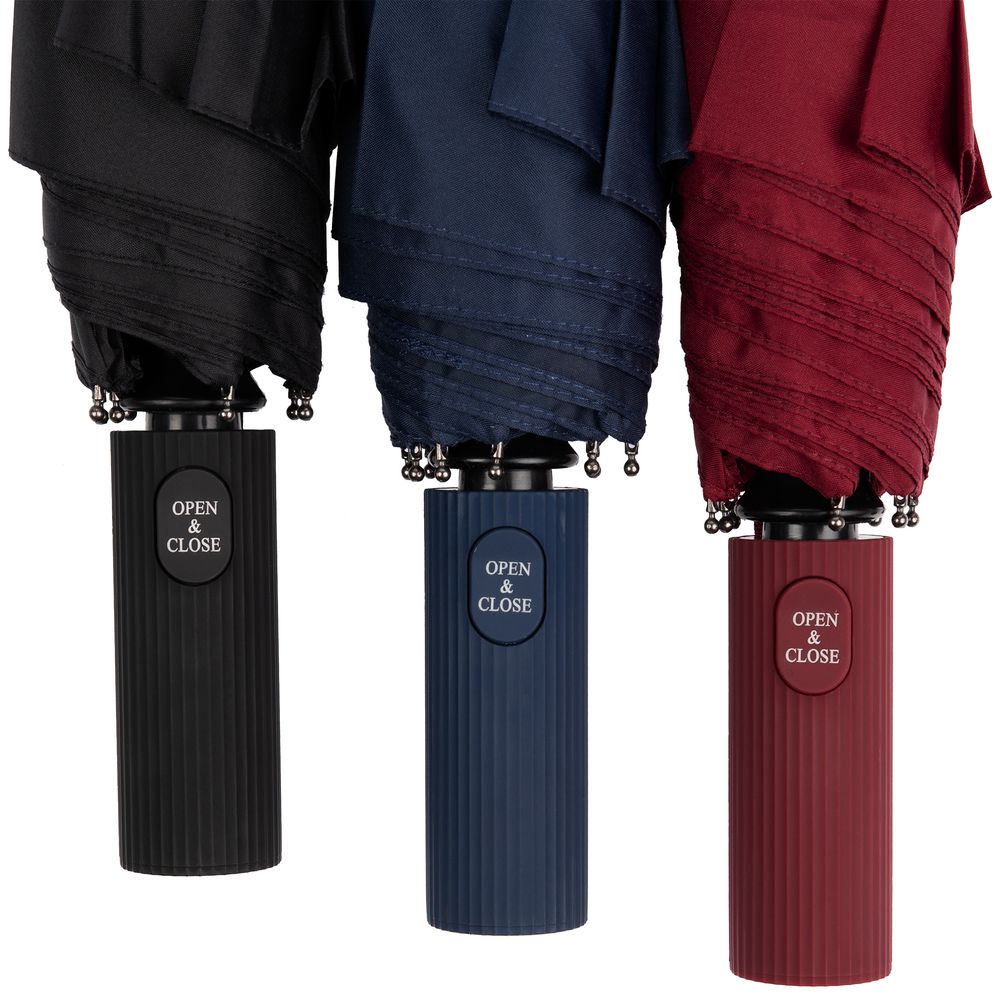 Элегантное решение классического зонта — с надежной ребристой ручкой и насыщенными оттенками купола.