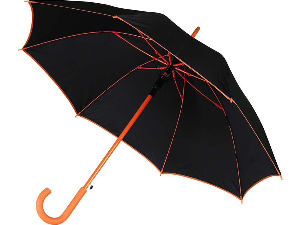 Стильный полуавтоматический зонт-трость защитит во время дождя, а в сложенном виде дополнит деловой образ. На внешнюю сторону купола зонта можно нанести любое изображение.