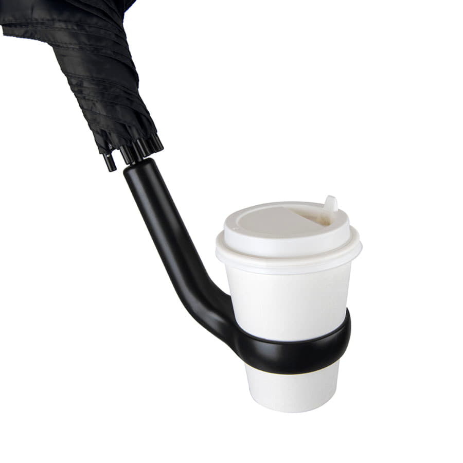 Ручка с держателем подходит для кофейного стакана или небольшой термокружки. Эта полезная особенность позволит вам в процессе использования зонта освободить руку, чтобы ответить на звонок, например. плотность нейлона 190Т диаметр отверстия в ручке - 7см
