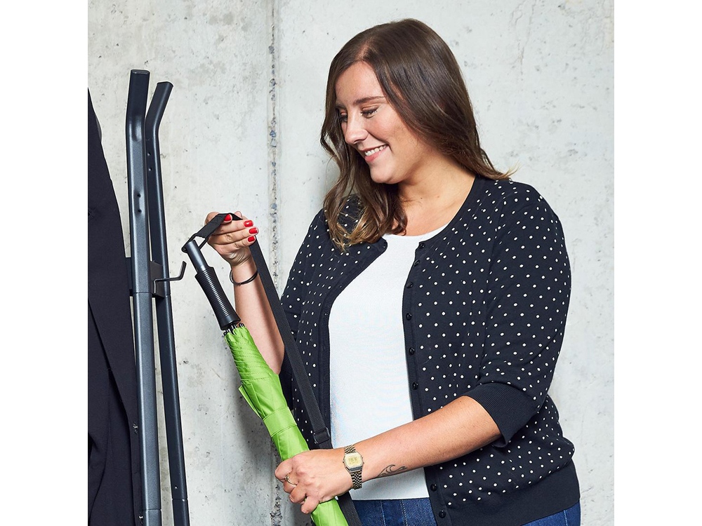 Неоспоримое удобство этого зонта в ремне для ношения на плече. Ремень можно отстегнуть, используя карабин.
